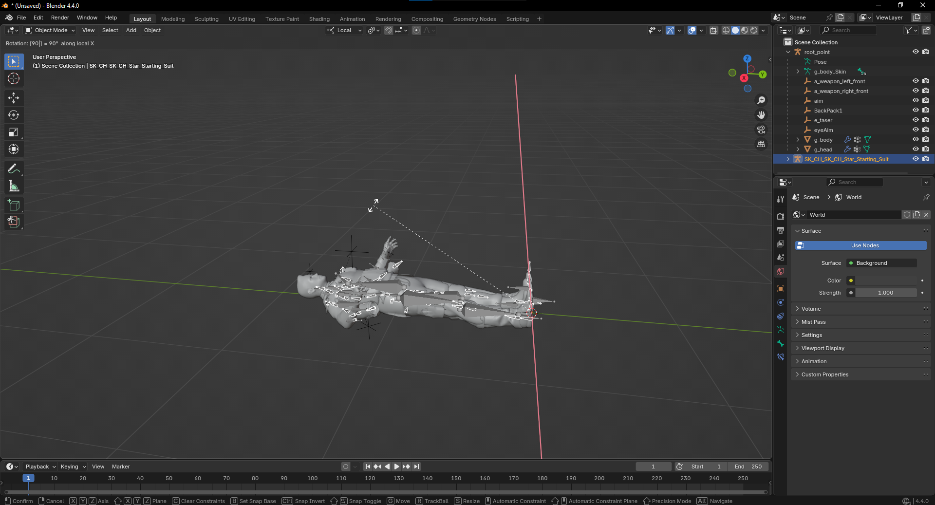 After that, you may also need to rotate the model to adjust to be right on top of the PAYDAY 2 rig, to do so, you can tap R on your keyboard and it will rotate the model around, to adjust the axis of position you want to rotate the model on, you can click X, Y or Z after you put your model in a rotation mode.
