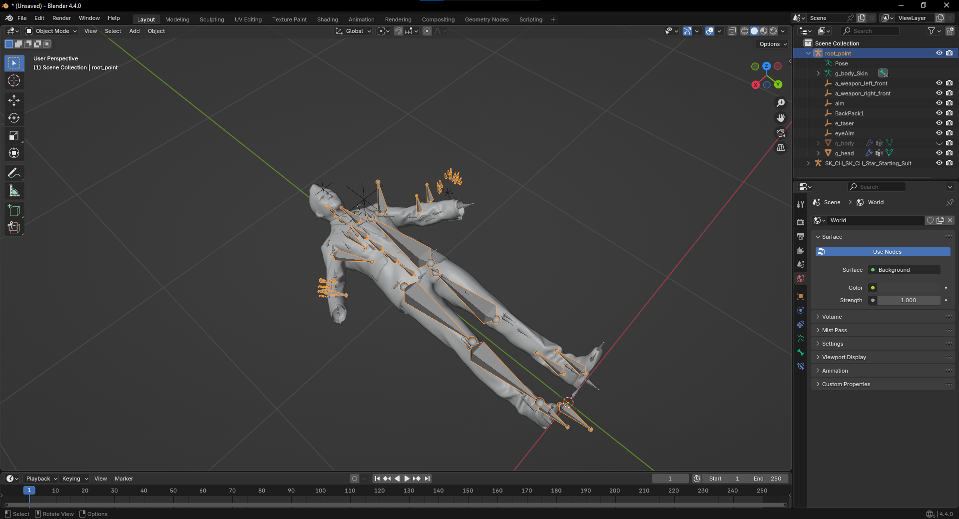 For the sake of an example, I will use Houston's body model when converting PAYDAY 3's rig over to be compatible with PAYDAY 2's rig. When a model is imported into blender, you will notice that sometimes the models of what you are editing is a bigger scale compared to PAYDAY 2. If you need to adjust the scale of a model: