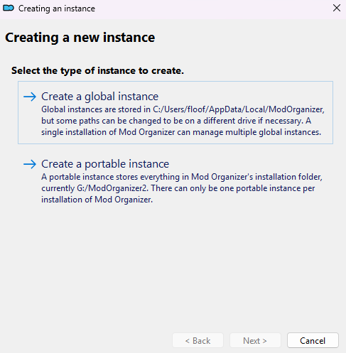 - Make sure to open an instance of MO2 for the game you wish to download mods for or it will not work.