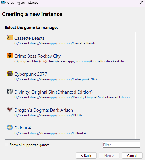 - Additional games can be requested on the MWS discord in the channel #mod manager