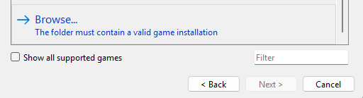 - If the game is not showing automatically you may want to scroll to the bottom and select the game folder manually.