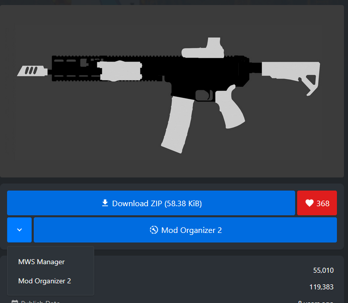 - Should Mod Organizer 2 not show as an option on the Mod then its either inside the drop down menu on the side or the mod does not support automatic installation.