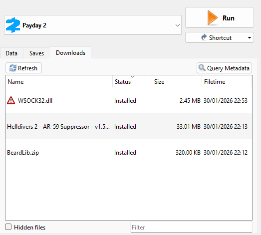 - To install a mod into the virtual file system simply doubleclick a file in the downloads tab.