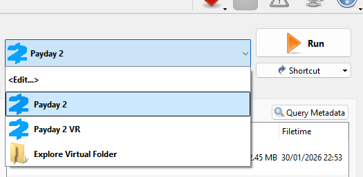 - If you wish to run a game with mods, simply make sure mods are enable and launch an option from the executables menu.