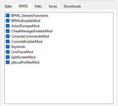 Once activated the UE4SS Tab will populate, it allows toggling UE4SS specific mods directly.